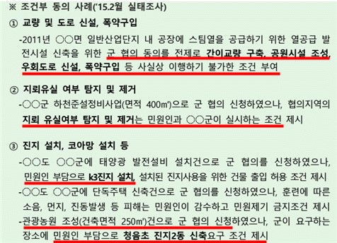 양구군은 군 면적(700.84㎢)의 절반이 넘는 땅(399.65㎢)이 ‘군사시설 보호구역’으로 지정돼 있다. 군사시설 보호구역에서는 조그만 농가 주택을 지으려 해도 군부대의 동의를 얻어야 한다. 동의를 얻어내기 위한 세부기준이 명확지 않고, 절차도 까다롭다. 2015년 국민권익위원회 권고안에 따르면 2010년부터 5년간 접수된 군사 보호구역 관련 민원은 2만 건이 넘었다.