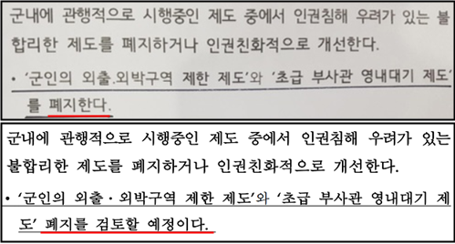이런 대안들이 제시되는데도 국방부는 후속대책도 없이 해제 발표를 했다가 혼선만 키웠다는 비판을 받고 있다. 지난 2월 21일 국방부가 처음 배포한 ‘군 적폐청산 위원회 3차 권고안 발표’ 보도자료 내용에는 ‘군인의 외출 외박구역 제한 제도 폐지’라는 내용이 명시돼 있었다. 보도가 나간 뒤 접경지역 주민들의 반발이 이어지자 국방부는 지난달 8일 홈페이지에 게시된 보도자료를 ‘폐지’에서 ‘폐지 검토’로 바꿨다. 그러는 동안 지역주민들과 군인들, 지자체 사이 갈등만 더욱 커졌다.