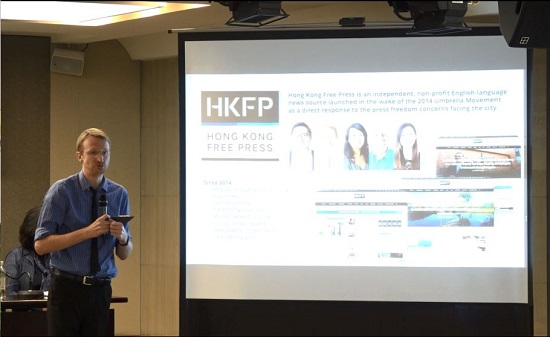 마지막 발제자로 톰 그룬디 <홍콩프리프레스(HKFP)> 편집장이 나섰다. 그룬디 편집장은 “지난 몇 년간 홍콩의 언론자유가 퇴색하고 있다”고 말했다. 언론인들을 겨냥한 물리적 위협이 증가하고 있고, 몇몇 출판인들이 실종되는 사건도 있었다고 한다. 그는 “기업에서 광고를 보이콧 한다든지, 중국 기업에서 홍콩 언론사를 공격적으로 인수하는 경우도 있다”고 말했다. ‘홍콩독립’을 보도하면 중국 정부에서 압력을 가하기 때문에 뉴스룸 내부의 자기검열도 점점 심해지고 있다고 한다. 홍콩 언론매체들이 그 수는 많은데도 정치적 성향이 다양하지 못한 이유다.
