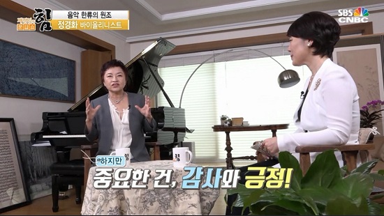 ‘바이올린의 여제(女帝)’로 불리며 지난 50여 년간 세계무대를 누벼 온 ‘음악 한류의 원조’ 바이올리니스트 정경화(70) 미국 줄리아드음악원 교수가 지난달 31일 SBSCNBC <제정임의 문답쇼, 힘>에 출연해 음악 인생을 회고했다. 일흔의 나이에도 왕성한 활동을 이어가고 있는 그는 과거 ‘완벽한 연주를 보여줘야 한다’는 강박 때문에 늘 두려움을 안고 살았다고 고백했다. 서양 무대에서 활동하는 동양인으로서, 힘들어도 겉으로 표현하는 걸 수치스럽게 여겼고 아파도 표현하지 못했다고 한다.