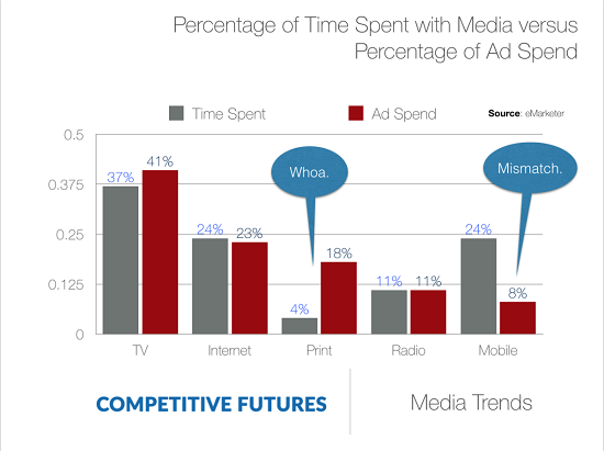 “정상적인 시장은 광고 점유율과 독자 점유율이 유사한 거예요. 그런데 그것이 일치 안 되는 시장이 있죠? 신문 시장과 모바일 시장입니다. 신문 시장은 독자에 비해 광고 규모가 크고, 모바일은 그 반대죠. 왜 이런 일이 일어났을까요? 그것은 신문 독자 4%의 ‘질적 분석’을 해보면 알 수 있습니다. 그 안에 정치인, 기업 경영진이 있는 거죠. 소비자의 사회적 영향력이 크기 때문에 광고주가 붙는 거예요. 아마 그 사람들이 정계와 재계 은퇴를 하지 않는 이상 당분간 그 영향력은 유지될 것이라고 봅니다.”