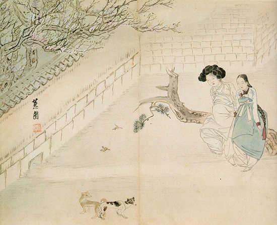 “아니, 이렇게 비속한 그림을 그리다니!” 혜원 신윤복은 조선 시대 대표적인 에로티시즘 화가다. 그는 당시 사회에서 금기시하던 남녀의 밀회, 구애를 서슴없이 그림에 담아냈다. 남성과 양반 중심 사회에서 은폐되어야 했던 여성을 회화의 주체로 전면 등장시켰다. 그의 그림에서 여성은 생기 어린 표정과 행동으로 스스로를 드러내고어 ‘성욕’의 적극적 주체가 된다. ‘과부’란 그림이 대표적이다. 생식의 계절, 분홍 꽃이 흐드러지게 핀 나무 아래 개 두 마리가 짝짓기하고, 소복 입은 과부는 그것을 보며 피식 웃는다. 옆의 시누이는 웃지 말라고 과부의 허벅지를 꼬집는다. 강명관이 쓴 <조선풍속사 3>은 혜원의 그림 ‘과부’가 남편 잃은 여성의 억압된 성(性)을 폭로하는 것이라 지적했다.