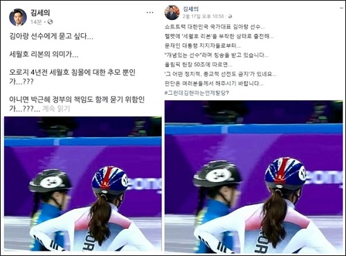 김 기자는 또 지난 2월 동계올림픽에 출전한 쇼트트랙 김아랑 선수 헬멧과 지난해 3월 WBC 야구 국가대표로 출전한 이대호 선수 글러브에 새겨진 세월호 추모 리본을 두고 페이스북을 통해 ‘정치적 표현’이라고 주장했다. 그는 지난 2월 ‘김아랑 선수에게 묻고 싶다, 오로지 4년 전 세월호 침몰에 대한 추모뿐인가, 아니면 박근혜 정부의 책임도 함께 묻기 위함인가’라는 글을 올렸다. 운동선수가 정치적 표현을 한다고 비난하고 있으나, 거꾸로 그 자신이 기사로는 말하지 않고 SNS를 통해 정치적 주장을 하고 있는 것이다.