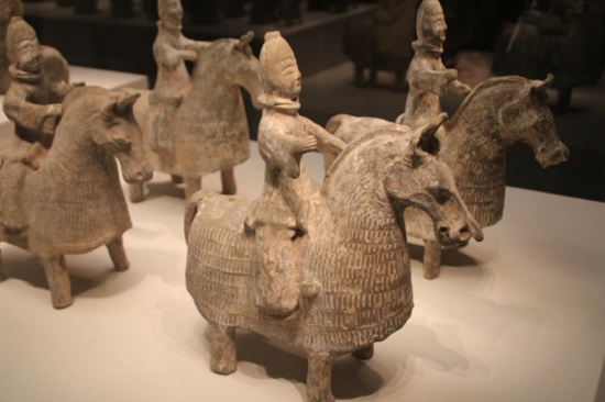 북경 국가 박물관에서는 5∼6세기 동아시아 강대국이자 고구려와도 우호 관계를 맺었던 선비족 북위의 개마무사 도용이 흥미를 자아낸다. 중국의 역사 고도 낙양 박물관이나 서안 섬서성 박물관도 북위 개마무사 도용이 자리를 지킨다. 말갑옷이 기마민족 선비족에도 있었음을 말해준다. 선비족에 앞서 BC 3세기∼AD 3세기 활동했던 기마민족의 대명사 훈(흉노)족은 어땠을까? 내몽골 자치구 성도인 호화호특 내몽골 박물원에 가면 훈과 한나라 사이 기마 전투 장면을 그린 화상석 사진을 여러 점 볼 수 있다. 투구나 갑옷은 보이지만, 말갑옷을 입힌 흔적은 없다. 시황제의 진나라와 한나라는 많은 병사와 말 도용을 남겼지만 말갑옷 관련 유물은 아직 출토되지 않는다.