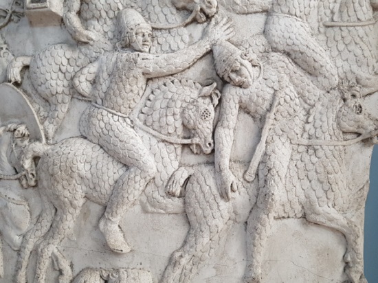 ‘로마의 땅’이라는 말뜻의 루마니아. 수도 부쿠레슈티 역사박물관은 트라야누스 기둥의 주요 장면을 패널로 복제해 자세히 보여준다. 로마 기병과 달리 다키아 기병은 찰갑 차림이고, 말도 갑옷 차림새다. 흑해 다키아에서 만주 고구려까지 유라시아 초원지대 기마문화 속 말갑옷과 찰갑 개마무사의 전투 풍속도가 생생하게 겹쳐진다. 조각과 그림으로만 남은 유라시아 초원지대와 달리 국립 김해박물관에 전시 중인 함안 마갑총 가야 말갑옷은 실제 유물로 세계사적 보존가치를 지닌다. 문화재 당국의 국보 지정 추진을 기대해 본다.