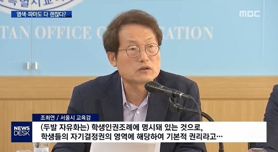 지난 9월 27일 서울시교육청에서 열린 기자간담회에서 조희연 서울시 교육감은 중고교생 두발규제를 폐지하는 ‘두발 자유화’를 추진하겠다고 밝혔다. 조 교육감은 “두발 자유화는 학생인권조례에 명시돼 있다”며 “두발 상태를 결정하는 것은 자기 결정권 영역에 해당하며, 기본적 권리로 보장받아야 한다”고 말했다. 이어 조 교육감은 두발 길이뿐 아니라 염색이나 파마 등 두발 상태도 학생 자율에 맡겨야 한다고 강조했다.
