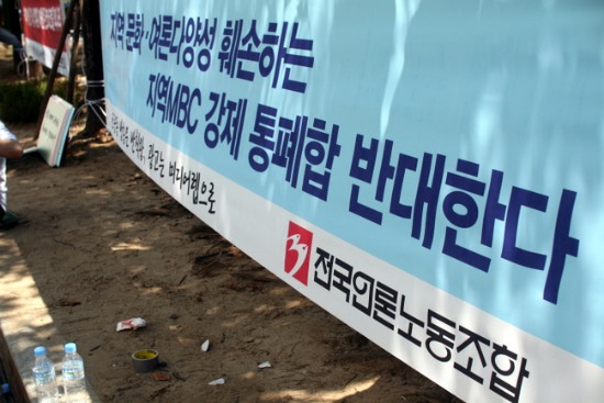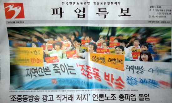 이날 경남도민일보 노조원들은 회사차원에서 신문을 하루 휴간하고 출정식에 나와 참가자들의 환호와 격려를 받았다. 경남도민일보는 조중동 방송의 광고 직접 영업이 허용될 경우 무엇보다 지역신문들이 가장 먼저 위기에 처할 것이라는 인식아래 23일자 신문에 ‘파업 특보’를 함께 배달하고, 24일자 신문을 휴간한 채 투쟁에 나섰다.