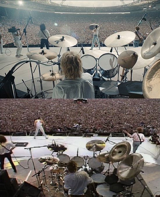 영화 후반부 20분을 장식한 장면은 85년 라이브 에이드 공연이었다. 유튜브에 올려진 영상 조회수는 1억 회를 훌쩍 넘어섰다. 영화를 보고 ‘퀸 앓이’를 하는 이들이 ‘출석 체크’를 하며 만든 수치다. 당시 콘서트 실황을 본 사람들은 새삼 영화의 섬세한 디테일에 놀란다. 피아노를 치는 프레디 앞에 놓인 콜라컵부터 카메라맨의 의상, 프레디의 동선까지 감탄을 자아낸다. 충실한 재현 덕분에 영화 후반부 20분은 공연을 다시 보는 느낌이다.