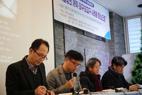천주교 개혁연대 대표인 김항섭 한신대 교수의 인사말을 시작으로 제2차 토론회 ‘교회 사업장의 개혁 – 대구대교구 사례를 중심으로’가 지난 8일 오후 2시 대구 시민공익활동지원센터에서 열렸다. 지난 9월에 있었던 천주교개혁연대의 1차토론회 이후 석 달 만이다.