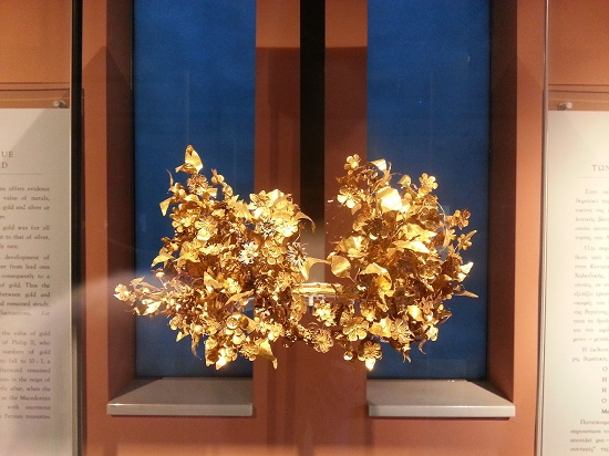 그리스, 터키, 이탈리아 반도 남부의 그리스문명이 꽃폈던 지역에서 리쓰(Wreath)와 디아뎀(Diadem) 형태 황금관들이 출토된다. 참나무와 도금양, 올리브 형태 나뭇잎 관들이 주를 이룬다. 테살로니키 박물관을 수놓는 화려한 나뭇잎 금관들의 찬란한 빛은 탐방객의 시선을 한눈에 사로잡는다. 특히, 도금양 황금관은 무성한 잎은 물론 꽃송이에 나비가 날아드는 모습까지 금과 라피스라줄리 같은 보석으로 표현해 더욱 아름답다. 초화(草花)를 넘어 정원을 금관에 구현해 놓은 모습이다. 나뭇잎 형태를 좀 더 추상화시킨 디아뎀 형태 관들도 발굴된다. 귀족 여성들이 실생활에서도 사용했을 가능성은 벽화나 도자기, 모자이크에서 보듯 높아 보인다.