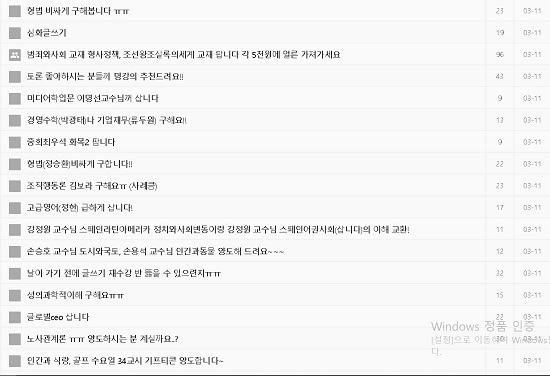 이런 상황에서 수강신청에 실패한 학생들이 자신이 꼭 들어야 하는 과목을 신청하는 데 성공한 학생들에게 수강과목을 급히 산다거나 양도해달라는 글을 올리는 등 수강신청 과목 거래가 이뤄지는 일까지 벌어지게 됐다는 것이다.