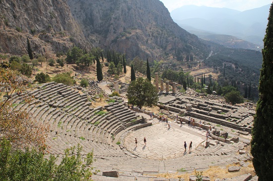 그리스 수도 아테네에서 서북 내륙으로 170여 km 가면 고대 그리스인들이 지구의 중심, 지구의 배꼽 옴팔로스(Omphalos)라고 여기던 델포이(Delphoi)가 나온다. 파르나소스산의 깎아지르는 산세 아래로 고대 그리스인들이 신의 뜻을 알아내는 최고의 신탁소로 여기던 델포이 아폴론 신전이 아늑하게 자리 잡았다. 비록 건물은 무너졌지만, 거대한 초석들은 오롯하다. 이 아폴론 신전 여신관 피티아(Pythia)가 지그시 올리브 가지를 입에 물로 날아가는 새의 날갯짓을 보며 낮게 읊조리는 한마디가 곧 개인이나 도시국가의 운명을 갈랐다. 전쟁이냐 평화냐를 가르는 중요한 정책결정이 이렇게 이뤄졌다. 세계사 시간에 자주 듣던 페르시아 전쟁 당시 아테네가 페르시아에 대응해 싸울 것인지, 항복할 것인지의 운명도 그렇게 결정됐다. 지중해 전역의 그리스문명권에서 가장 신성한 신탁소 역할을 한 아폴론 신전의 주신은 당연히 태양신 아폴론이다. 신전 폐허에서 관련유물이 나왔다.