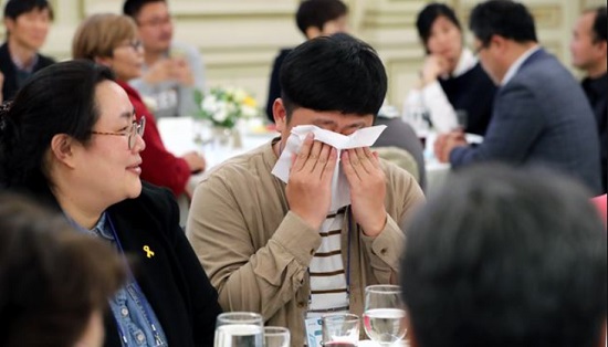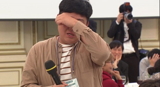 지난 1일 오후 청와대에서 문재인 대통령이 주재한 ‘시민사회단체 초청간담회’에 전국청년정책네트워크 엄창환 대표가 청년 문제를 이야기하다 울먹이자 사진기자의 플래시가 터졌고 2일 아침 신문들은 그 모습을 1면 머리 사진으로 보도했다.