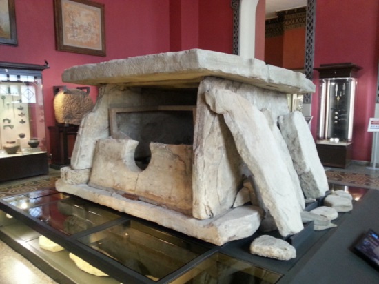 고인돌 내부에서 70여 구의 유골이 쏟아졌다. 공동묘지였던 셈이다. 이 고인돌이 원래 있던 곳은 카자흐스탄과 인접한 흑해 동쪽 연안 크라스노다르. 2007년 대홍수로 유실 위기에 놓이자 안전한 보존을 위해 박물관으로 옮겨왔다. 박물관 측은 제작연대를 BC 2000년∼BC 1500년경으로 추정한다. 한반도나 만주의 고인돌보다 오래됐다. 고인돌의 발상지가 흑해일까?