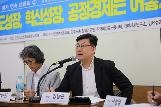 김태동 성균관대 명예교수의 ‘문재인 정부 2년 평가와 앞으로의 과제’ 기조발제를 시작으로, 박상인 서울대 교수가 ‘문재인 정부 재벌정책 2년 평가’, 황선웅 부경대 교수가 ‘소득주도성장과 산업 생태계 혁신’, 김남근 경제민주화네트워크 정책위원장이 ‘중소상공인과 함께하는 소득주도성장과 혁신경제’를 차례로 발표했다. 이병천 강원대 명예교수가 사회를 맡았다.