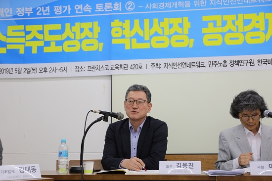 지식인선언네트워크가 개최한 ‘문재인 정부 2년 평가 연속 토론회’ 두 번째 모임이 2일 오후 서울 중구 정동 프란치스코 교육회관에서 열렸다. 지난달 19일 열린 첫 모임 ‘문재인 정부의 경제정책, 좌표는 있는가’에 이어, 이번에는 ‘소득주도성장, 혁신성장, 공정경제는 어떻게 되었나?’를 주제로 토론회가 진행됐다.