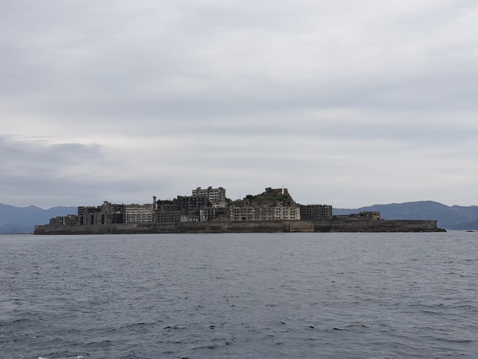 흐린 날씨에도 배는 다행히 군함도 입구에 접안했다. 관광객들은 노신사를 따라 미리 정해진 견학 코스로 이동했다. 탄광 노동자들이 이용한 공동목욕탕이 있던 종합사무소, 30·31호동 철근 콘크리트 아파트, 석탄을 저장하고 운반선에 실어 나르는 저탄 벨트 컨베이어 등 일부 시설을 멀찌감치 볼 수 있었다. 시설 보호를 위해 곳곳에 울타리가 설치돼 있었다.