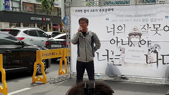 “기업에 책임을 묻고, 기업이 더 이상 이런 살인을 반복하지 않도록 만들기 위한 노력을 지속하고 있습니다. 여러분도 각자 삶의 자리에서 우리 모두 김군이 우리에게 남긴 숙제들을 해서 죽은 자들이 우리에게 남긴 빚을 갚으며 살았으면 좋겠습니다.”