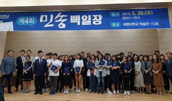 제4회 민송 백일장이 29일 오전 9시부터 오후 7시까지 충북 제천시 세명대학교 학술관을 비롯한 캠퍼스에서 열렸다. 세명대 설립자 민송(民松) 권영우 박사의 ‘위세광명’(爲世光明), 곧 세상을 밝게 비추는 인재를 양성한다는 교육이념을 기리는 이번 백일장에는 557명이 참가했다.