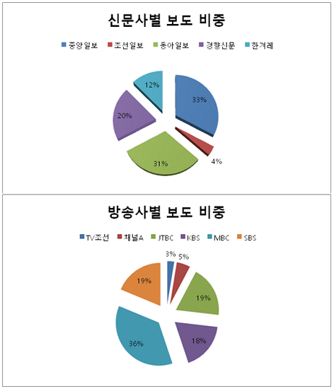MBC는 윤 씨와 관련된 기사 105건을 보도했다. MBC 역시 KBS와 마찬가지로 검찰과 법정 출석 등 현장 기사를 주로 보도했다. 하지만 윤 씨를 뉴스데스크에서 인터뷰하는 과정에서는 그에게 실명 공개를 거듭 요구하는 앵커의 태도가 문제가 되었다. SBS는 62건, <중앙일보> 70건, <동아일보> 74건을 보도했다.