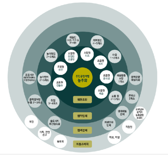 하동주민공정여행 놀루와 협동조합은 지역 자원, 지속가능성, 여행자, 지역 주민 중심을 비전으로 삼았다. ‘공정여행’ 운동은 1980년대 말 유럽을 비롯한 영미권 나라들을 중심으로 시작됐다. ‘여행은 소비가 아니라 관계다’라는 구호를 내건다. 실제 ‘놀루와’는 다른 협동조합이나 마을업체와 협약해 긴밀한 지역사회 연결망을 구축하고 있다.