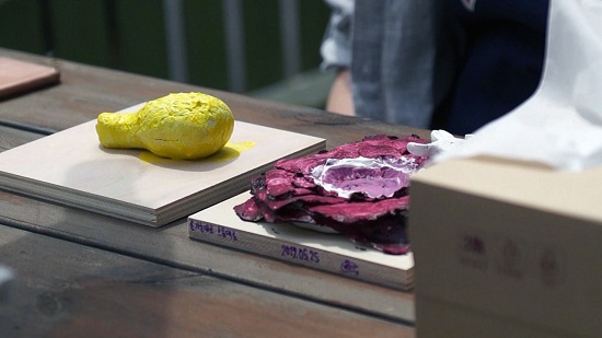 많은 작품 중 겹겹이 표현된 그릇과 노오란 치킨을 만든 밤율 님의 작품을 눈여겨보았습니다. 작품이 무언가를 이야기하는 것 같았거든요. 조심스레 인터뷰를 요청했습니다.