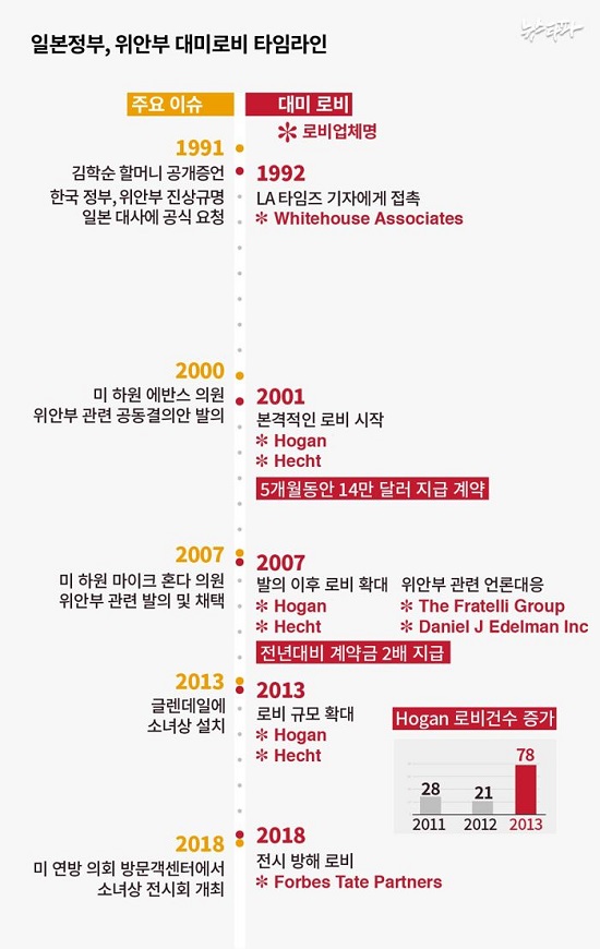일본정부, 위안부 이슈 떠오를 때마다 집중 로비로 대응