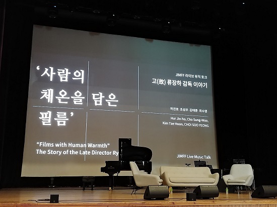 11일 제천시 문화회관에서 제천국제음악영화제(JIMFF) 라이브 뮤직 토크 ‘사람의 체온을 담은 필름’ 고 류장하 감독 이야기가 열렸다. 제15회 JIMFF의 특별 프로그램으로, 팝 칼럼니스트 김태훈이 사회를 맡았다. 허진호 감독(제천국제음악영화제 집행위원장)과 조성우 음악감독, 배우 최수영이 패널로 출연해 류 감독에 관한 기억을 관객들과 나눴다.