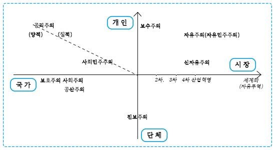 성 발행인은 우파의 보수주의는 현 상태 유지를 위해 전통・역사・관습・제도 등을 굳게 지키는 것이라고 정의하면서 전통이나 관습을 깨부수는 혁명이 일어나면 우파는 그 반동으로 원상태로 돌아가려고 한다고 설명했다. 변화를 거부하는 반동이 거세지면서 좌파는 우경화해 신자유주의를 안고 가게 된다는 것이다.