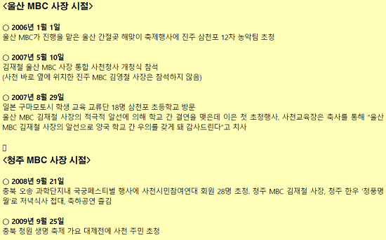 김재철 전 사장은 정치권과 유착해 MBC 사장에 오른 뒤 보은을 위해 공영방송 MBC를 ‘정권방송’을 만들고 자신이 정치권으로 진출하는 교두보로 삼았다. 기자 시절부터 정치적 야심을 채우려고 언론인의 직분과 지위를 악용해 정치권과 유착해온 그는 지역 MBC 사장 시절에는 내놓고 정치 활동을 하고 지역관리를 했다. <기자협회보>에 따르면 김 전 사장은 고향인 경남 사천의 지역 활동에 정성을 쏟았다.