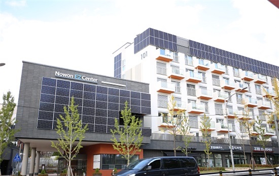 “노원 이지하우스를 처음 지을 때 ‘철갑을 두른 아파트’니 ‘태양광으로 덕지덕지 붙어있는 아파트’니 얘기가 많았어요. 이 아파트가 쓰는 에너지 대부분을 이 아이들(태양광)이 생산한다고 생각하면 그렇게 말 못 해요. 효자 노릇 하는 거죠.”