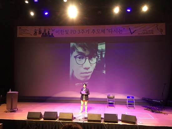 한편 25일 오후 7시 30분부터 서울 상암동 에스플렉스센터에서는 ‘이한빛 PD 3주기 추모제, 다시는’이 열렸다. 유가족, 친지, 노동계 인사 등 참석자 230여명은 고인을 추억하고 추모하면서 다시는 이런 희생자가 나오지 않도록 함께 노력할 것을 다짐했다.