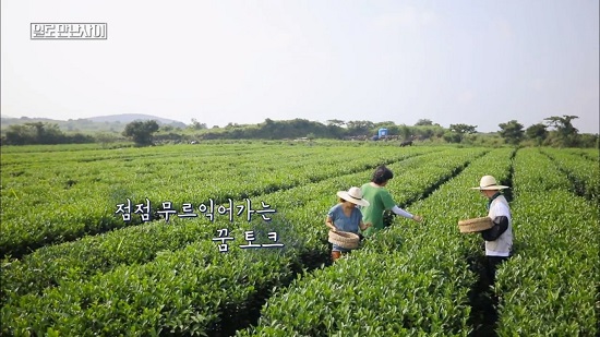 ‘노동 힐링 프로젝트’라는 수식어가 붙은 이 프로그램에도 아쉬운 점은 있다. <일로 만난 사이>의 일터는 일손이 부족한 곳의 사연을 받아 정해지는데, 이 때문에 일터와 게스트 간 개연성이 사라진다. 토크쇼이면서 일종의 휴먼 다큐멘터리처럼 진행되지만, 일터에서 게스트가 찾을 수 있는 이야기는 오직 땀에 불과하다. 1화 게스트인 이효리 부부는 그들이 거주하는 제주도 녹차밭에서 일을 하지만, 녹차밭은 아름다운 풍경을 제공할 뿐 그들에게 큰 의미가 있는 공간은 아니다. 그래서 ‘노동 힐링’이라는 단어는 시청자에게 힐링을 선사하는 것인지, 출연자가 노동을 통해 힐링한다는 의미인지 이해하기 어렵다. 자극적이지 않은 장면과 대화로 비교적 차분한 분위기를 이어가는 예능이라도, 단순히 일터에서 연예인이 땀을 흘리는 걸 본다고 시청자가 치유되지는 않는다.