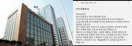 취업준비생 김모(28·부산 금정구) 씨는 입사 전형을 밟던 부산교통공사와 반도체부품 제조업체 A사에서 지난달 말 모두 잠정 시험 연기 통보를 받았다. 부산교통공사는 필기시험, A사는 인공지능(AI)면접 후 인·적성 검사단계가 지난달 말로 예정돼 있었는데 일정이 전격 연기됐다. 김 씨는 “도서관에서 컨디션 조절하면서 시험에 모든 걸 맞추고 있었는데, 갑자기 취소돼서 허탈했다”고 말했다. 그는 “나중에 채용 일정이 주요 기업들 공채와 겹쳐 부산교통공사 시험을 포기해야 하는 상황이 올까봐 걱정”이라고 덧붙였다.