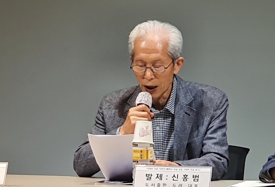 제3세션 사회를 맡은 최영묵 성공회대 교수는 <역설의 변증>이라는 책과 함께 발표자인 신홍범 선생을 소개했다. 최 교수는 “리영희 선생이 두레출판사 대표인 신홍범 선생께서 보도지침 사건으로 감옥에 계실 때 ‘옥바라지용’으로 이 책을 두레에서 내게 했다’며 “이 책의 서문에서 신 선생님의 건강을 빌었다”고 이야기했다.