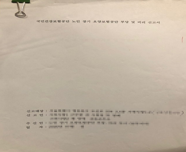 이원옥 간호조무사가 국민건강보험공단과 영등포구청에 신고한 내용에 따르면 이 요양원입소자 황정식(가명·87) 씨는 작년 3월 26일 부천에 있는 병원에 10일 간 입원한 뒤 요양원으로 돌아와 닷새 만에 숨졌다. 병원에 입원하기 전에 미열이 있었던 그는 요양원에 돌아온 다음 날인 4월 6일부터 체온이 39도까지 올랐는데도 요양원에서 응급조처로 진통제, 소염제, 해열제를 복용하게 했을 뿐 병원에 보내지 않아 퇴원 닷새 만인 4월 10일 세상을 떠났다. 황 씨 유가족들은 요양원에서 정확한 경위를 알려주지 않아 지금도 그가 병원에 입원했다 돌아와서 건강이 악화했다는 사실을 모르고 있다.