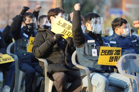 오늘도 많은 2020년의 전태일들이 쓰러져가고 있다. 택배 노동자들은 택배회사들이 매출경쟁을 위해 밀어붙이는 택배비 절감, 당일배송, 새벽배송에 벼랑 끝으로 몰리고 잇따라 목숨을 잃었다. 이렇듯 매일같이 8명의 노동자들이 살아서 집으로 돌아가지 못하고 있다. 지난 2016년 구의역에서 쓰러진 스크린도어 하청 노동자 김군, 지난 2018년 쓰러진 비정규직 노동자 김용균의 죽음이 국민들에게 준 슬픔은 지금도 생생하게 가슴에 남아있다. 국민들의 슬픔이 분노의 불길로 번져나가고 노동자들이 떨쳐 일어나 외치자 정치권에서도 대응하기 시작했다. 비로소 전태일 3법, 중대재해기업처벌법 등의 입법 추진 움직임에 시동이 걸린 것이다.