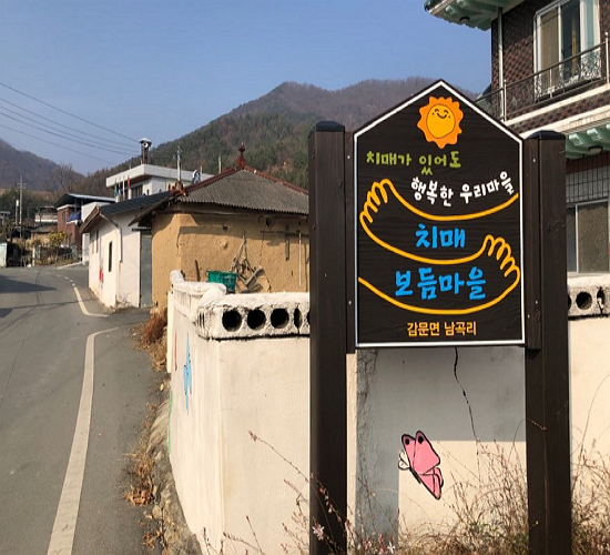 '치매가 있어도 행복한 우리마을'. 경북 김천시 감문면 남곡리 마을 입구에 서있는 ‘치매보듬마을’ 표지판이다. 보건복지부가 대통령 선거공약인 ‘치매국가책임제’의 일환으로 추진해온 사업으로, ‘치매에 걸려도 요양시설에 가지 않고 이웃의 도움을 받아 내가 살던 집에서 살 수 있게 한다’는 목적으로 시행중이다.