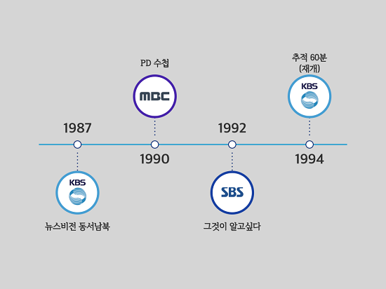 1983년 2월 편성된 KBS <추적 60분>이 ‘PD 저널리즘’의 시초다. 당시 방송국은 카메라맨이 야외에서 움직이며 촬영할 수 있는 ENG 카메라를 사용하기 시작했다. <추적 60분>은 ENG 카메라의 장점을 활용하는 정보성 현장취재 프로그램으로 기획됐다. 제작진은 현장감을 최대한 살릴 수 있는 아이템으로 방송을 제작했다. 2화 ‘한국의 몬도가네’ 편에서 보신을 둘러싼 세태를 비판하는 의도로 뱀과 멧돼지의 피를 마시는 현장을 포착해 방송했는데 화제가 됐다. 해당 방송은 시청률 50%를 기록했고, 방송 이후 뱀탕 영업과 코브라 수입이 금지됐다.