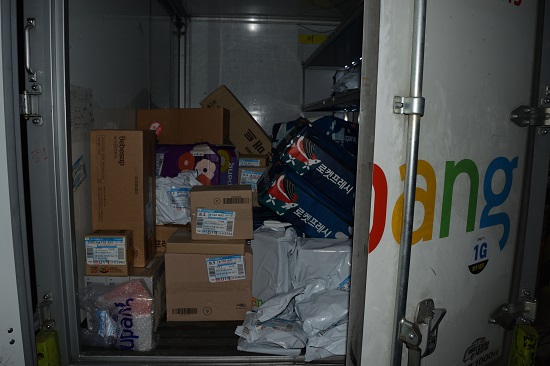 온라인 상거래 업체인 쿠팡의 배송직원은 화물 적재함이 달린 ‘쿠팡카’로 배달을 하는데, 이 차는 24시간 가동되기 때문에 고장이 잦다. 쿠팡의 경기도 양주 물류센터에서 일하는 김동훈(30·가명) 씨는 “최근 함께 일하는 동료 두 명이 슬라이드문에 손이 껴서 손가락뼈가 부러져 골절 수술을 했다”고 말했다. 낡은 슬라이드문이 잘 고정되지 않아 갑자기 닫히는 바람에 일어난 사고라고 한다. 철문이 빠른 속도로 강하게 닫히면 손가락뼈가 부러질 정도로 충격이 크다. 그는 “손가락 골절 사고까지 아니라도 슬라이드문에 손가락이 껴 피멍이 드는 등 타박상을 입는 건 흔한 일”이라고 덧붙였다.