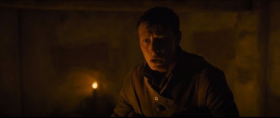 통제된 공간에서 빛나는 주황색은 안락함과 휴머니즘을 보여준다. 저녁에 적군에 쫓기다가 우연히 들어간 민가에서 스코필드는 홀로 갓난아이를 키우는 프랑스 여인을 만난다. 스코필드는 여인이 먹을 것이 없어 굶고 있다는 말에 자기 비상식량과 우유를 내놓는다. 머리를 다친 스코필드는 그곳에서 여인에게 치료를 받는데 그 공간을 밝히는 것이 촛불이다. 앞선 불과 색은 같지만, 여기서 불의 의미는 다르다. 가스통 바슐라르가 <촛불의 미학>에서 촛불이 타는 시간을 '삶과 꿈이 결합하는 시간'으로 봤듯, 이곳에서 촛불은 죽음의 공포를 넘어서 삶의 시간이 된다.