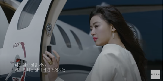 현대를 살아가는 도시 여성, 당신에게 지금 필요한 건 무엇인가? 화면 가득 전지현의 모습이 나타난다. 예전이나 지금이나 아름답다. 톱스타이자 선망의 대상인 전지현이 고뇌한다. 우아함과 강인함, 선함과 독함, 이기심과 이타심 사이에서 선택을 강요받는 전지현. 나도 그렇지 않을까? 그녀와 나에게서 선택을 강요받는 외로운 현대 여성이라는 공통점을 발견한다. 고민을 거듭하던 그녀는 이내 헤라 립스틱을 손에 쥐고 당당히 자신만의 길을 걸어간다. ‘아, 이거다! 지금 나에게 필요한 것. 내가 걸어가야 할 길’.