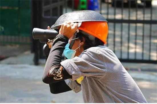 이 소년도 자신의 머리를 보호하기 위해 조잡한 안전모를 쓰고 철 대야를 위에 얹었다. 모르는 사람이 봤을 때는 우스울 수도 있는 사진이지만 ‘행동하는 미얀마 청년 연대’의 한 활동가는 몹시 가슴 아픈 모습이라고 말했다. 제대로 된 장비를 갖추고 안전하게 활동할 수 없는 시위대의 열악한 형편을 보여주기 때문이다. 그는 “총알은 나이를 가리지 않는데, 너무 어려보이는 소년이 목숨을 걸고 전방에 나선 사실이 사람들을 안타깝게 했다”고 말했다.