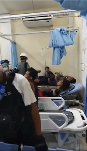 ▲한 병원의 응급실 모습이다. 시위에 참여했다 부상당한 시민들이 피를 흘리며 누워 있다. 이들은 휠체어에 실려 구급 이송된 후 간이 침상에 누워 처치를 받는다.