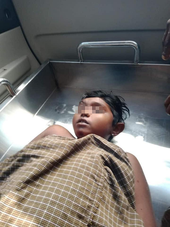 ▲4월 2일 양곤의 밍글라 타웅뉴운 철도병동에 머리 부상으로 사망한 어린 학생의 주검이 놓여 있다.
