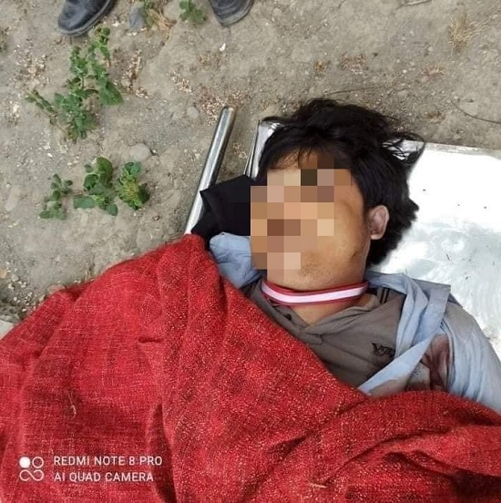 ▲사가잉 지역, 칼레이 마을. 군경의 포격으로 사망한 이의 옷이 찢어져 있다. 왼팔에 붉은 완장을 두른 모습이 보인다. 미얀마에서 붉은 완장은 위험한 상황에서 신체를 보호해주는 부적으로 통한다고 ‘행동하는 미얀마 청년연대’ 활동가는 설명했다.
