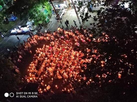 ▲4월 2일 양곤의 시내에서 심야 기도회가 열렸다. 민주 항쟁 중 사망한 이들을 기리며 미얀마 민주주의의 회복을 염원하는 시민들의 모습이다.