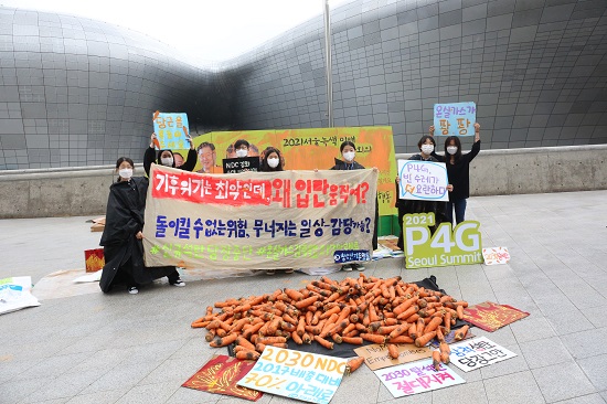 ‘P4G’는 ‘녹색성장 및 글로벌 목표 2030을 위한 연대(Partnering for Green Growth and the Global Goals 2030)'라는 국제협의체다. 이번 회의는 DDP에서 화상으로 열리며 45개 국가, 21개 국제기구에서 정상급 인사 68명이 참여한다. 윤 활동가가 말한 우리나라의 기존 NDC는 오는 2030년까지 2017년 탄소배출량의 24.4%를 줄이겠다는 내용으로, 국제사회에서 매우 미흡하다는 평가를 받고 있다.