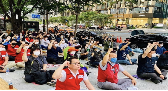 지난해 5월, 아시아나항공의 재하청업체인 아시아나케이오의 노동자 8명이 해고됐다. 공항·항공산업은 복잡한 다단계 하청 구조로 구성돼 있다. 아시아나항공 아래 운송 지원 서비스를 하는 하청업체 아시아나에어포트가 있고, 다시 그 아래 아시아나케이오가 있다. 아시아나케이오 노동자들은 기내 청소, 쓰레기 처리, 수하물 분류 운반 등의 업무를 수행해왔다. 코로나19로 운행 편 수가 감소하자 사측은 ‘희망퇴직’과 ‘무기한 무급휴직’을 강요했다. 말이 무급휴직이지 사실상 해고나 다름없었다. 무기한 무급휴직에 동의하지 않으면 정리해고 대상이 된다고 압박했다. 사측의 강요로 120명이 희망 퇴직했고, 200명은 무급휴직 중이다, 2020년 5월 11일, 회사의 일방적 무급휴직 요구를 거부한 11명 중 8명이 정리해고됐다. 모두 민주노총 조합원들이었다.