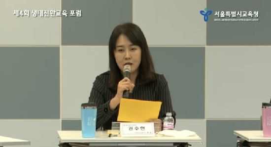 ▲ 서울시교육청이 주최한 생태전환교육포럼에서 권수현 영양교사가 발언하고 있다. ⓒ 서울시교육청
